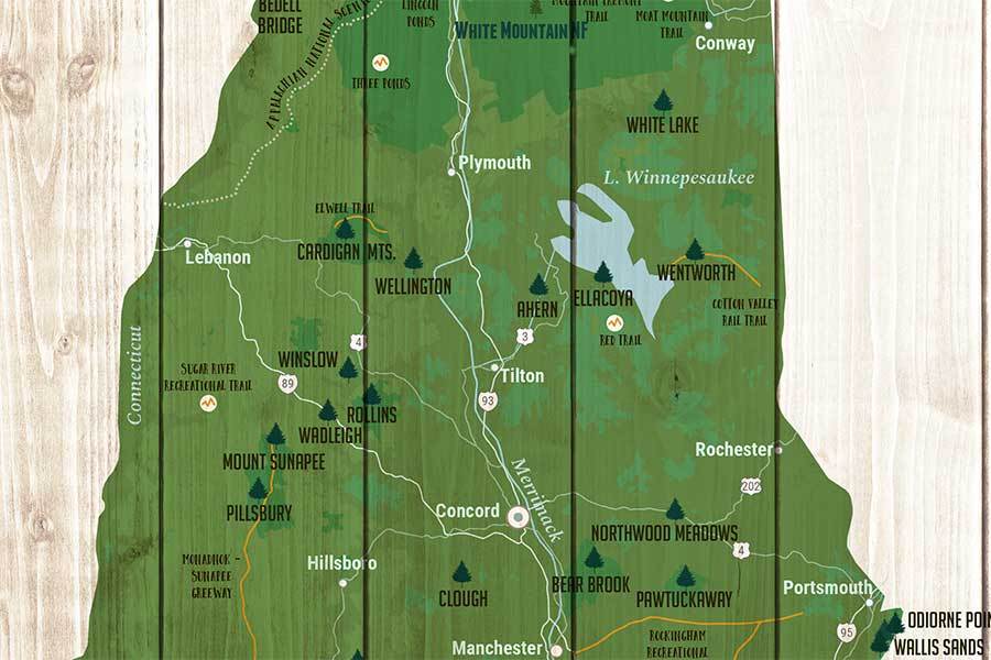 New Hampshire Map, State Park Wall decor – World Vibe Studio